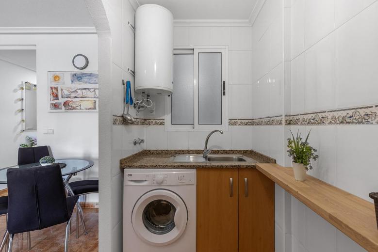 Se vende estudio en buen estado, ubicado en una funcional de Torrevieja, a pocos minutos de supermercados, gimnasios y otros servicios que facilitan el día a día. Con una superficie construida de 36 metros cuadrados, esta vivienda representa una excelente oportunidad como segunda vivienda o inversión destinada al alquiler vacacional. ~~El estudio se encuentra en un edificio construido en el año 2003, y se entrega amueblado, lo que permite su uso inmediato sin necesidad de realizar reformas. El espacio está bien aprovechado y ofrece un ambiente luminoso y funcional.~~Uno de los puntos fuertes de esta propiedad es su terraza con orientación sur, que garantiza una excelente entrada de luz natural durante todo el día. Este espacio exterior es perfecto para colocar una mesa y disfrutar de un desayuno, leer al sol o relajarse con una taza de café por las mañanas.~~La comunidad ofrece zonas comunes muy valoradas, entre ellas una piscina comunitaria para refrescarse en los meses más cálidos y un solárium comunitario ideal para tomar el sol y desconectar.~~Además, existe la posibilidad de adquirir una plaza de garaje con trastero en el mismo edificio por un precio adicional de 9.900 €, lo que resulta especialmente conveniente para quienes deseen una opción segura de almacenamiento y aparcamiento.~~~