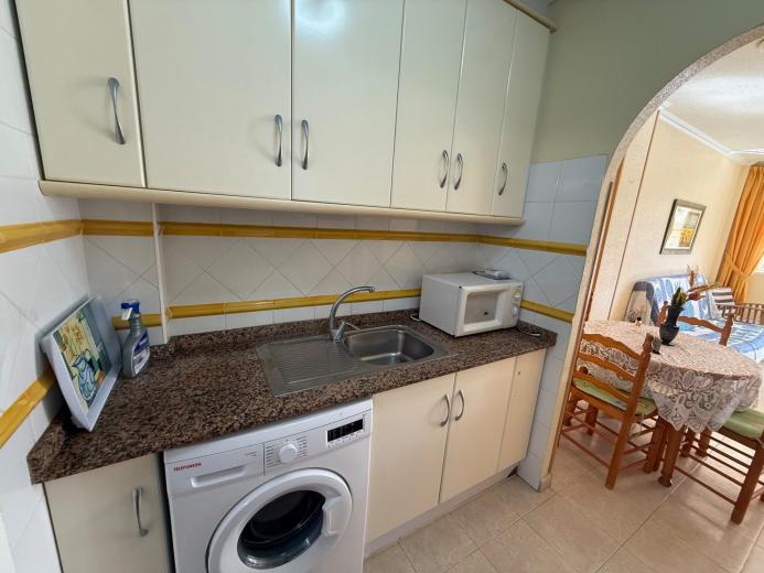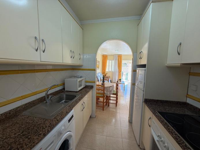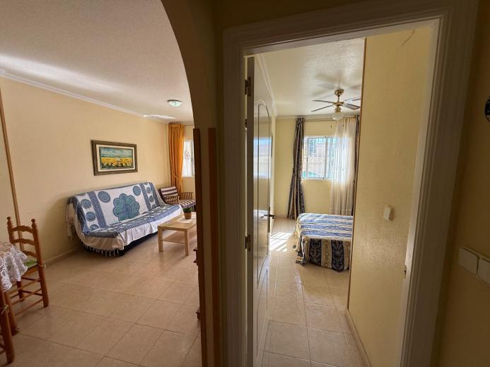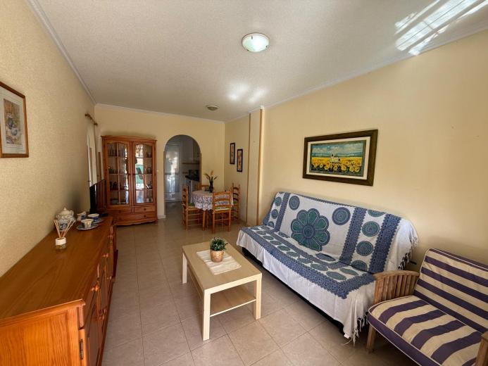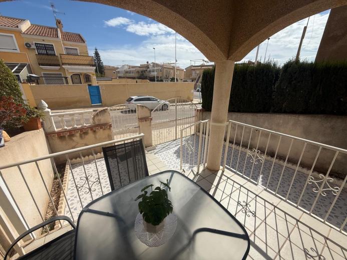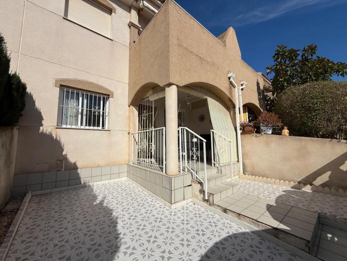 Acogedor bungalow bajo situado en la demandada zona de Aguas Nuevas (Torrevieja), dentro de la urbanización Retama.
